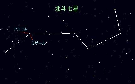 小さく光っている、ちっちゃいの(=アルコル)があるでしょ。