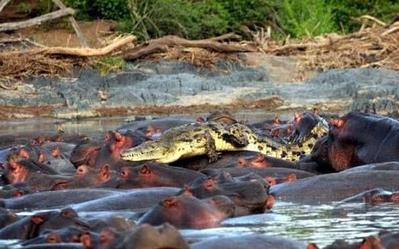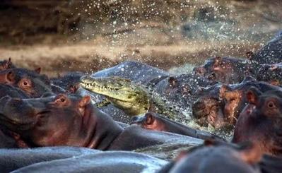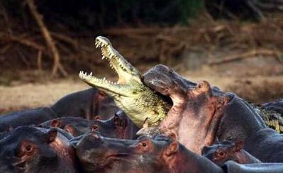 ワニがうっかりカバと遭遇するとどうなるか…。