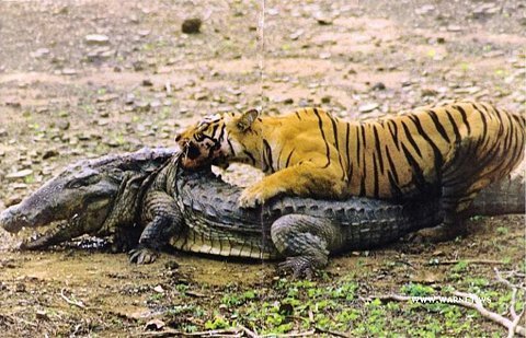 ワニが陸上に引きずり出され、ひっくり返されたら虎の勝ち