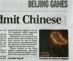 同紙などによると、五輪映像効果担当者が、合成映像と認めた。1年近くの時間を