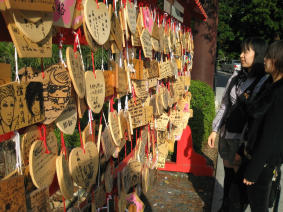 中学、高校生や大学生の女性が2、3人で来て、絵馬に書き込むようになった。