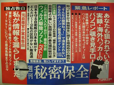 防止を呼びかける秘密保全がテーマの啓発ポスターなのだ。週刊誌の車内つり広告をま