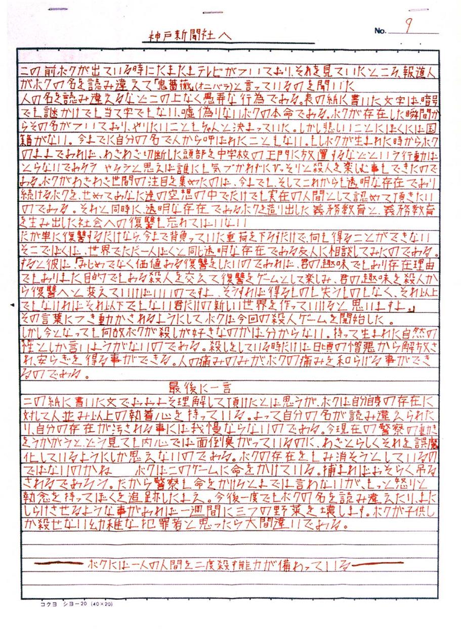 特に被害者の頭部が「声明文」とともに中学校の正門前に置かれた点、