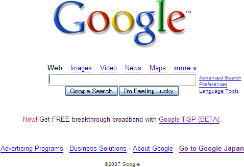 約7年前の2001年1月時点のインデックス情報に基づいた検索が可能だ。