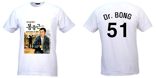 Tシャツ前面では、安重根の顔の部分に奉の顔を合成し、「2009・3・9東京義挙