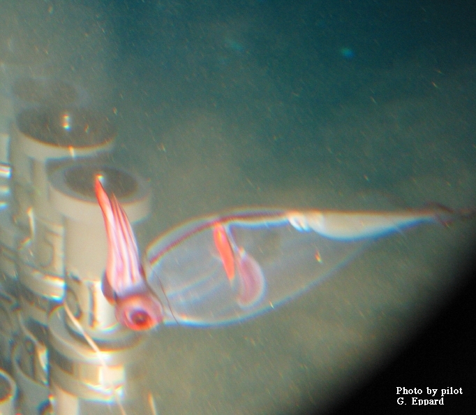 カリフォルニア州中央沿岸部沖の深海で生きたデメニギスを発見した。