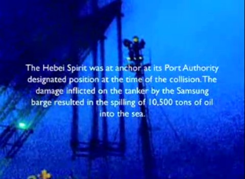 は投錨中であり、”10,800トン相当の原油”が 流出し、重大な海洋汚染を引き起こし、漁業