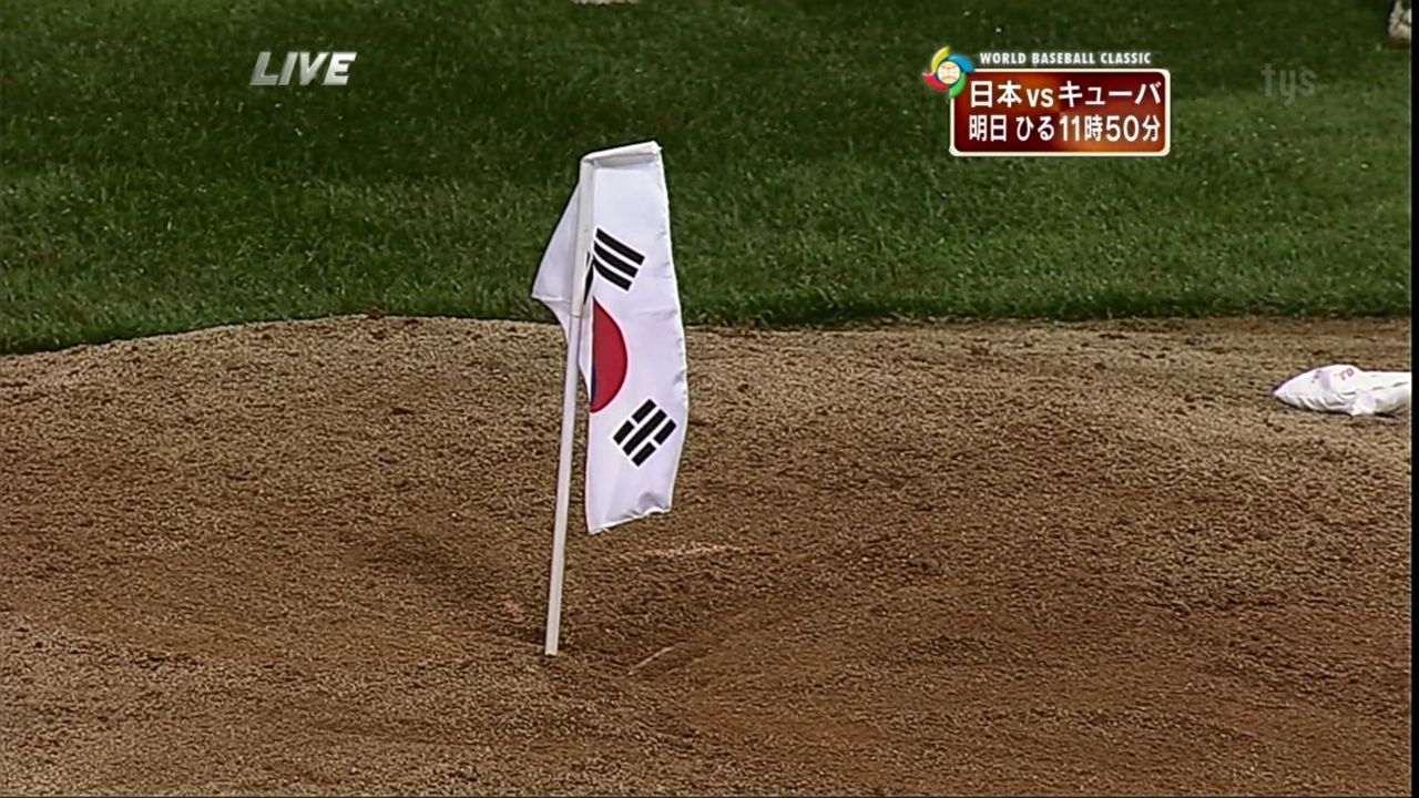 WBC 試合後マウンド上にまた韓国国旗を立てるパフォーマンス