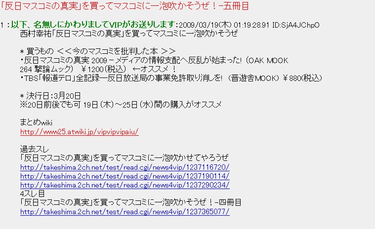 なお、今回の祭り会場である2ちゃんねるの関連スレッドを