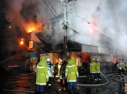 民主党支部の事務所などが入居している相模原卸売市場が全焼