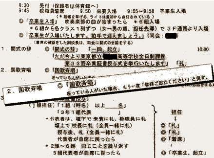 「生徒の人権踏みにじってる!許せない!」…卒業式の進行表に「君が代で着席する生徒がいたら起立促す」、都立高72校が明記
