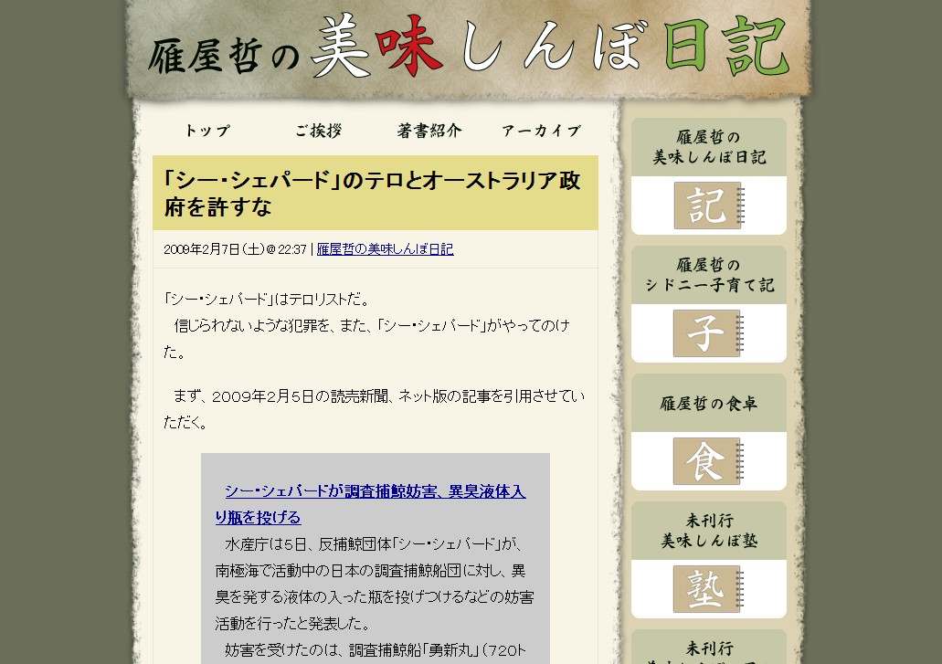 美味しんぼ・雁屋哲氏「シー・シェパードのテロとオーストラリア政府を許すな 自衛隊を派遣しろ、貿易も止めろ」