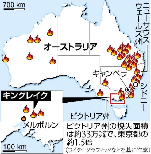 キロメートル。最も被害の大きいビクトリア(Victoria)州では、依然31か所で火災が