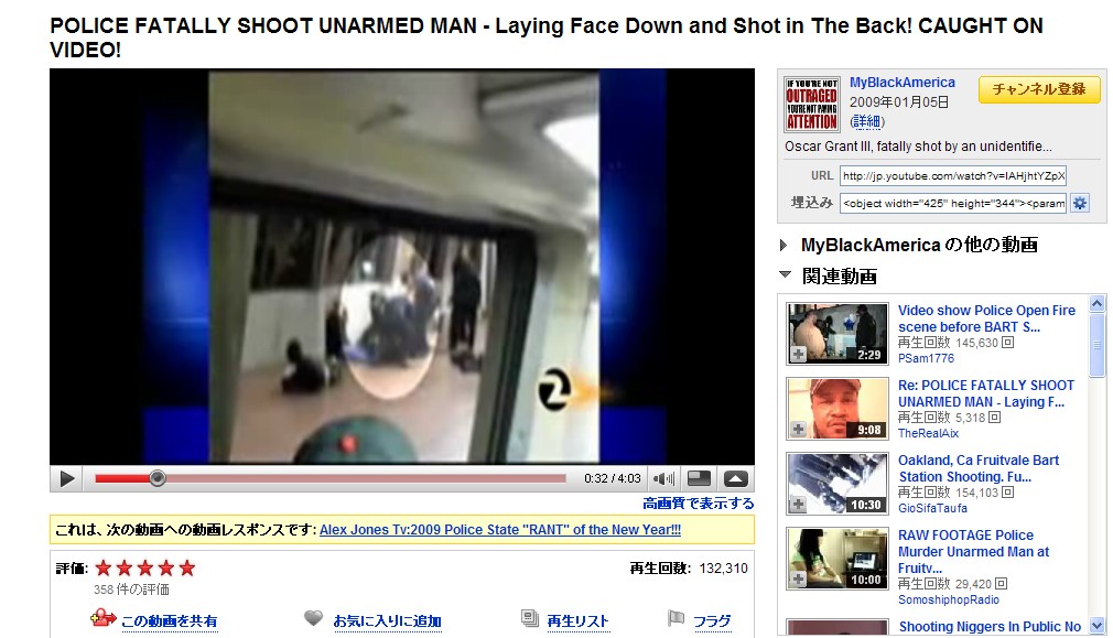 警官が黒人射殺、動画サイト「ユーチューブ」に流れテレビでも放映 ~抗議で暴徒化100人以上逮捕