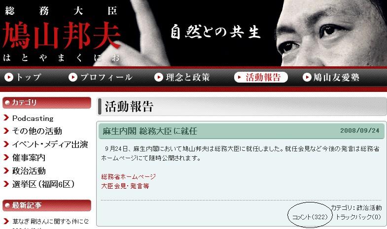 時を同じくして、昨日から書き込めなくなっていた鳩山氏のHPの